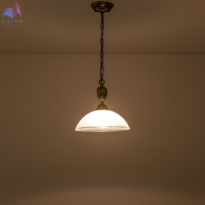 Светильник Citilux Латур CL413211 выполнен в классическом стиле. Корпус модели металлический, цвет бронза. Плафон стеклянный, белый полуматовый с утончённой прозрачной окантовкой. Высоту подвеса можно отрегулировать при установке.