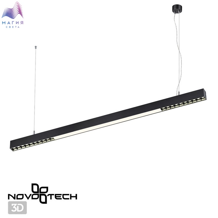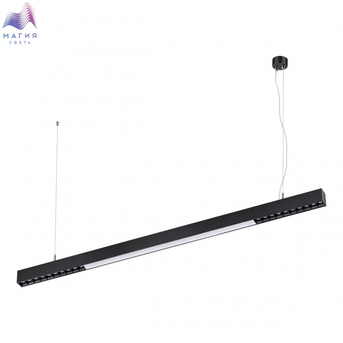 Линейный светодиодный светильник Novotech Iter. Модельный ряд представлен: в двух мощностях 30 Вт и 40 Вт, в двух длинах 79,8 см и 119,6 см, в двух классических цветах: чёрном и белом. Способ установки накладной или подвесной (подвесной комплект включен в поставку). Драйвер электропитания размещается внутри светильника.
