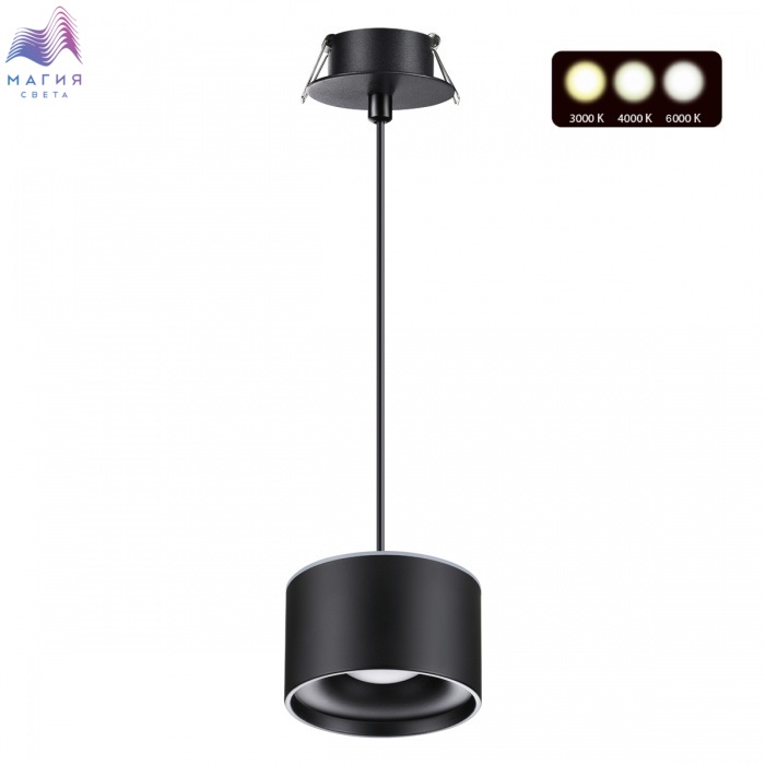 Светильник встраиваемый светодиодный Novotech Giro с переключателем цветовой температуры. На корпусе светильника находится переключатель 3000К-4000К-6000К, с помощью которого Вы можете самостоятельно выбрать нужную Вам цветовую температуру.