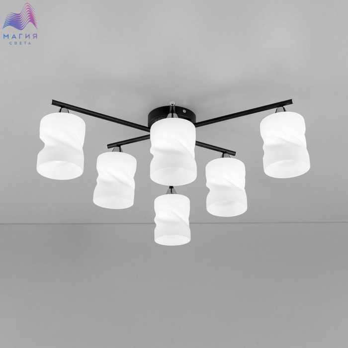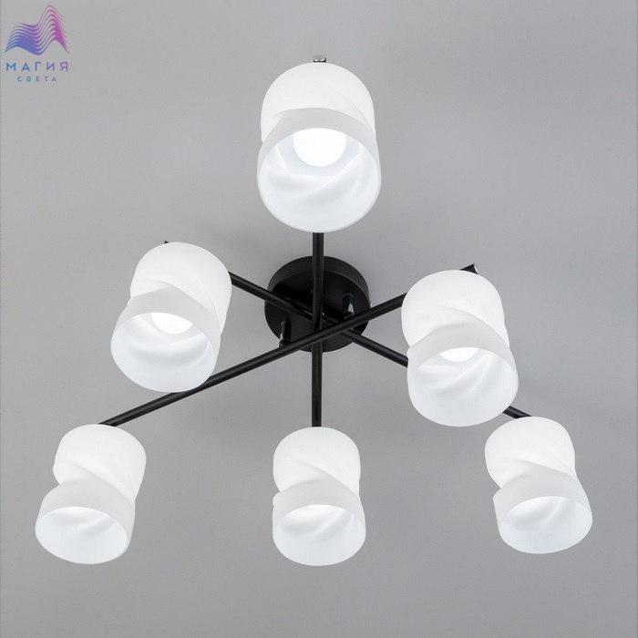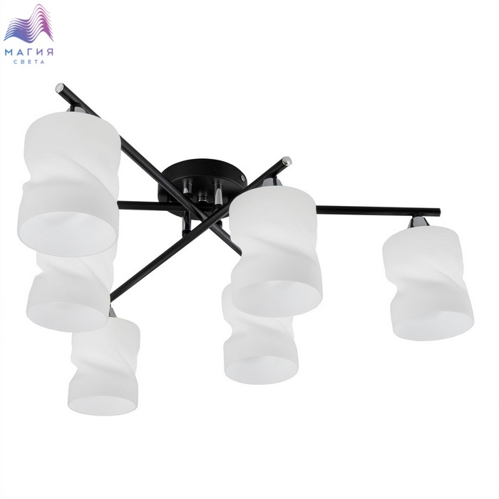 Потолочная люстра Citilux Нильс CL132165. Корпус изготовлен из металла, цвет - черный/хром. Плафоны стеклянные, белые матовые.