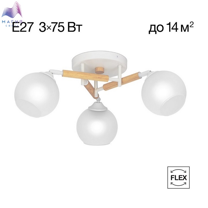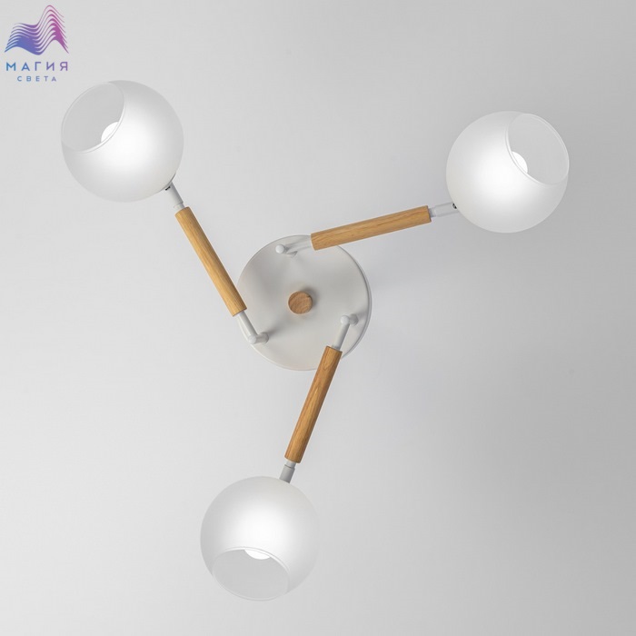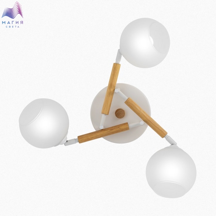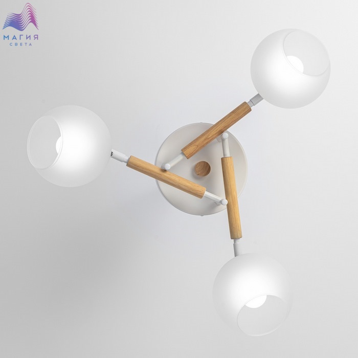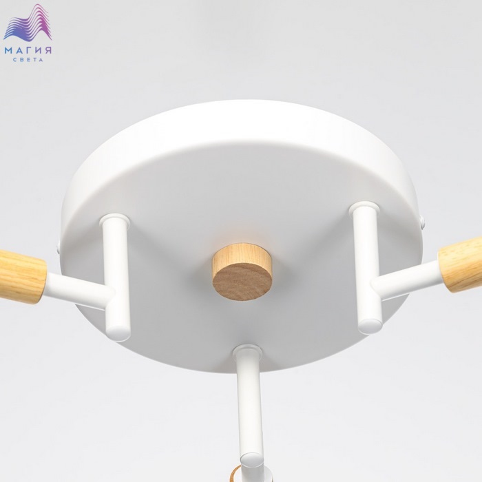 Потолочная люстра Citilux Tika CL133130. Материал: металл/дерево/стекло. Цвет: белый/натуральное дерево/белый. Поворотные шарниры позволяют направить плафоны в любую сторону.
