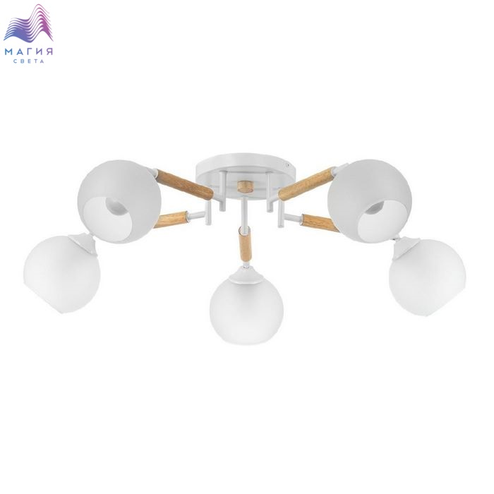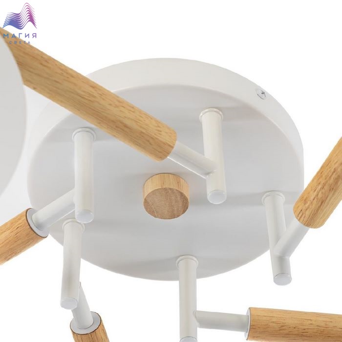 Потолочная люстра Citilux Tika CL133150. Материал: металл/дерево/стекло. Цвет: белый/натуральное дерево/белый. Поворотные шарниры позволяют направить плафоны в любую сторону.
