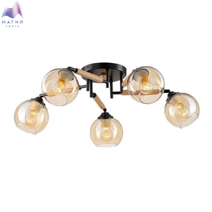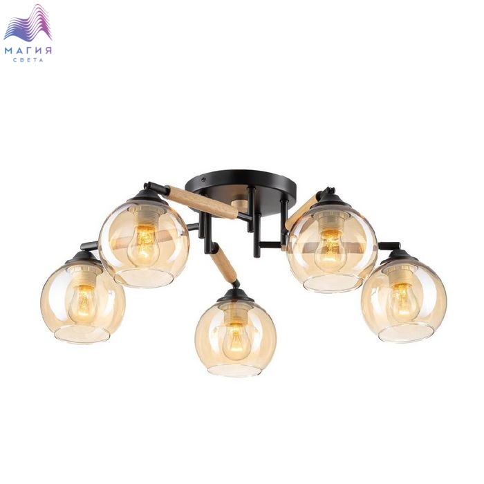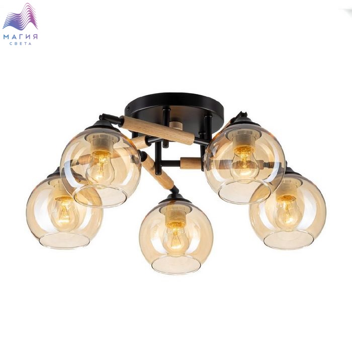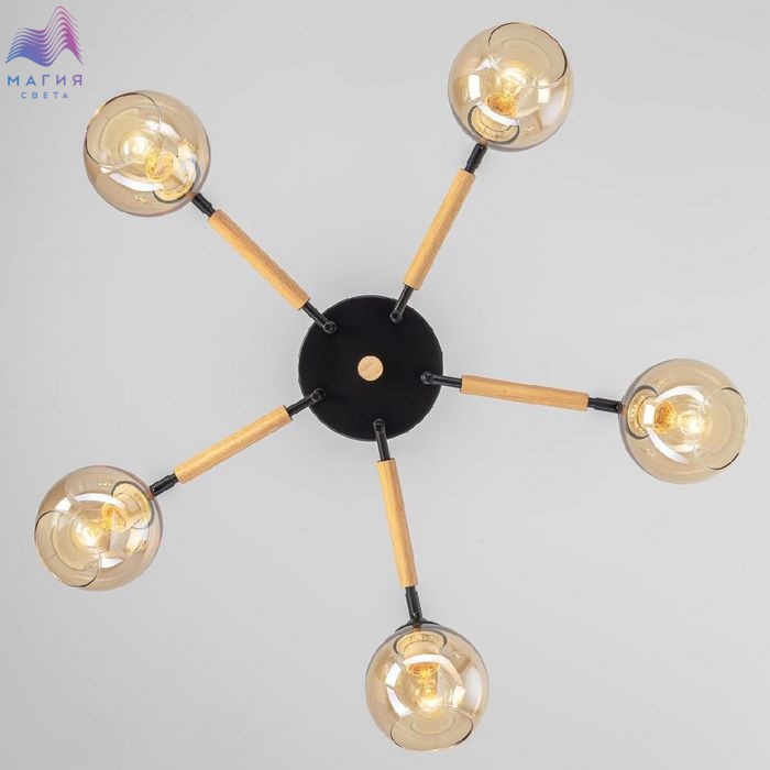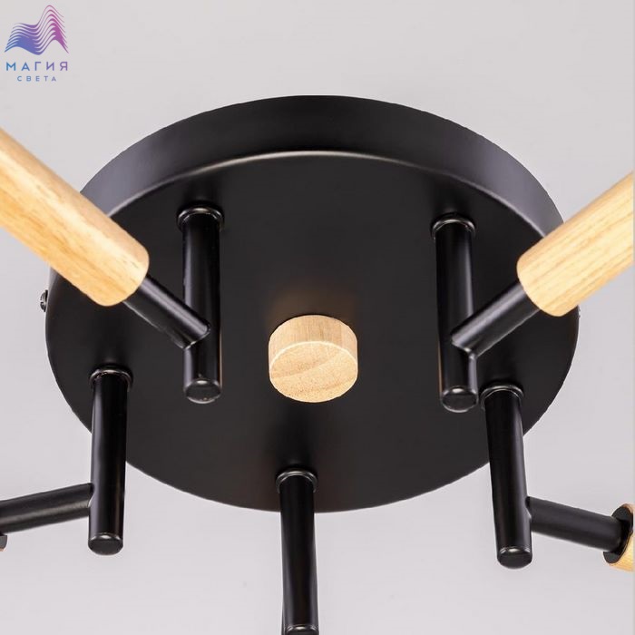 Потолочная люстра Citilux Tika CL133151. Материал: металл/дерево/стекло. Цвет: черный/натуральное дерево/шампань. Поворотные шарниры позволяют направить плафоны в любую сторону.