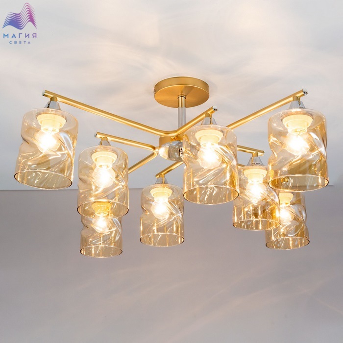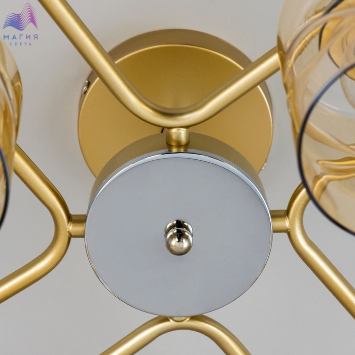 Потолочная люстра Citilux Клод CL137182. Корпус изготовлен из металла. Цвет - матовое золото/хром. Плафоны стеклянные, прозрачные, медового оттенка.