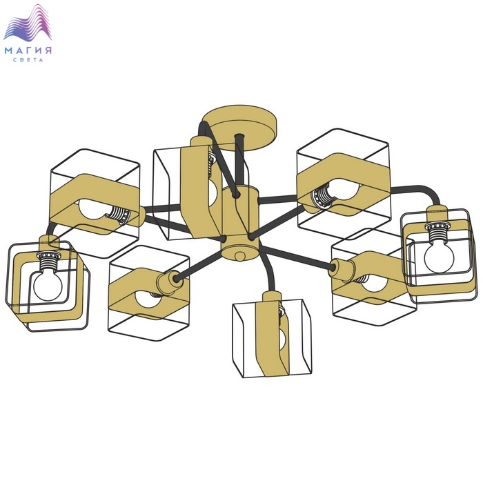 Потолочная люстра Citilux Бертон CL140181 в современном стиле. Корпус - металл, цвет - черный/бронза. Плафоны - стекло, цвет - прозрачный. Подходит для всех типов потолков, в том числе натяжных.