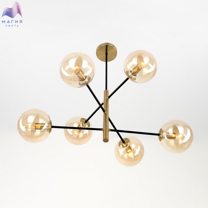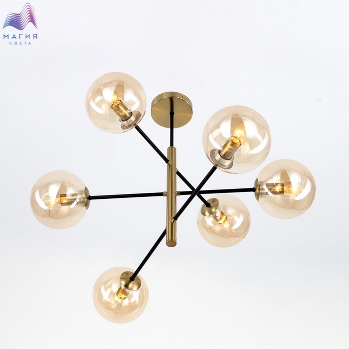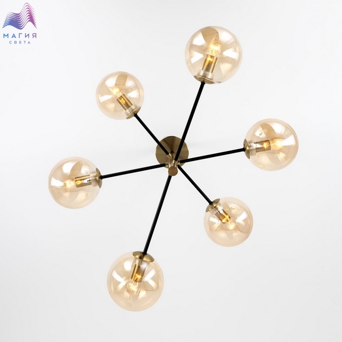 Потолочная люстра Citilux Лорен CL146263. Материал: металл/стекло. Цвет: бронза/черный/светло-янтарный.