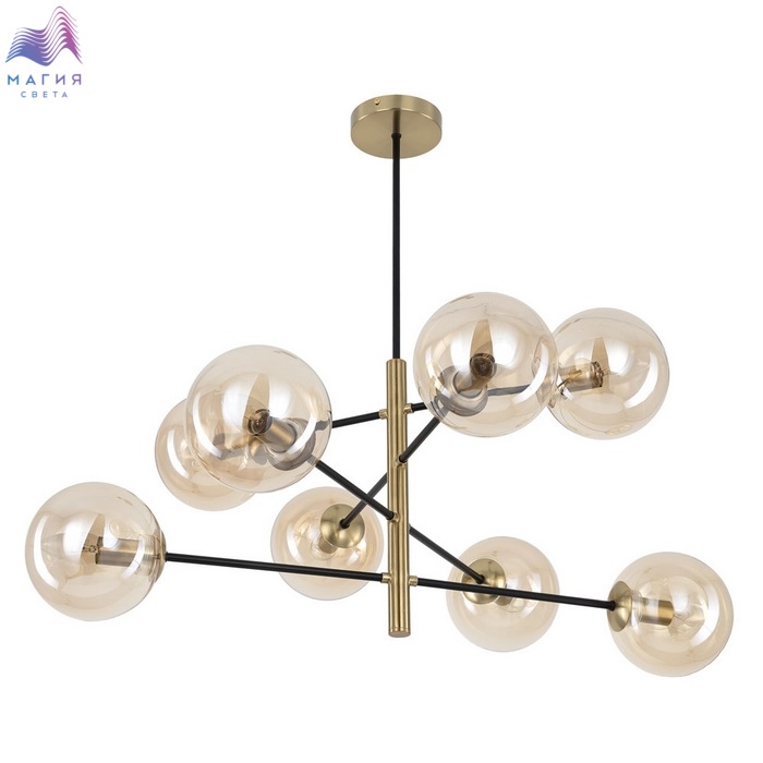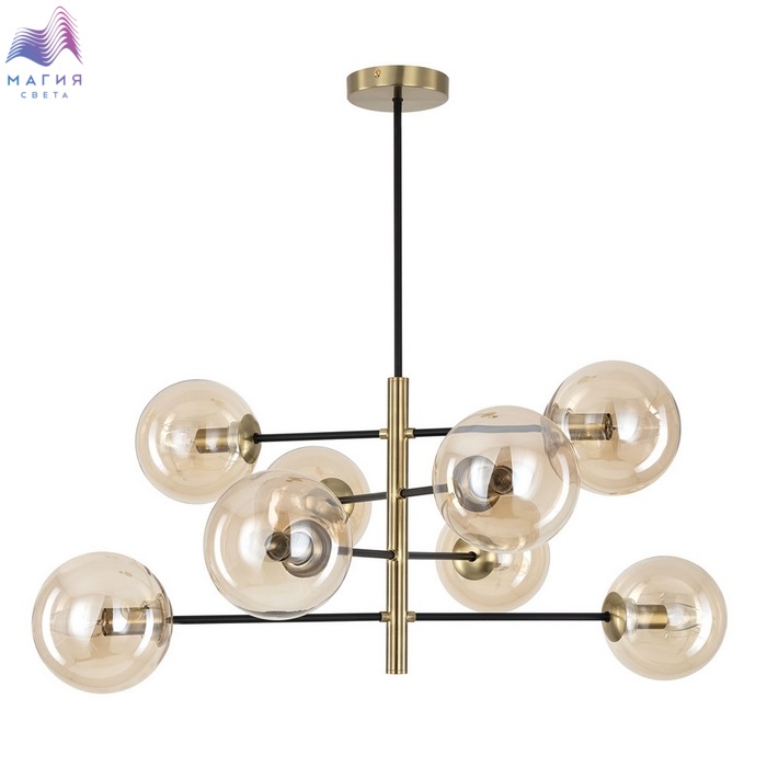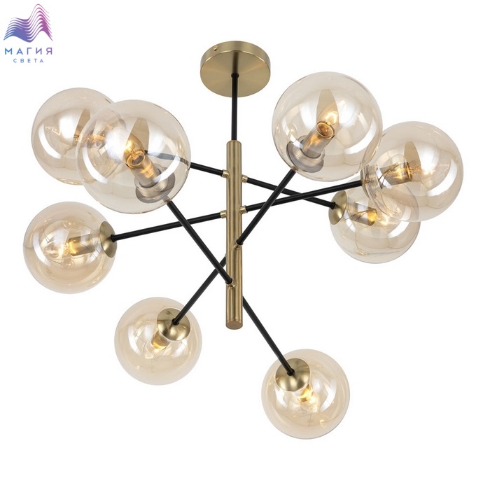 Потолочная люстра Citilux Лорен CL146283. Материал: металл/стекло. Цвет: бронза/черный/светло-янтарный. Высота устанавливается перед монтажом, два варианта - 52см или 70см.