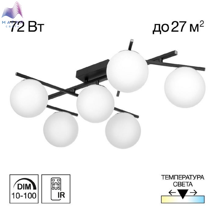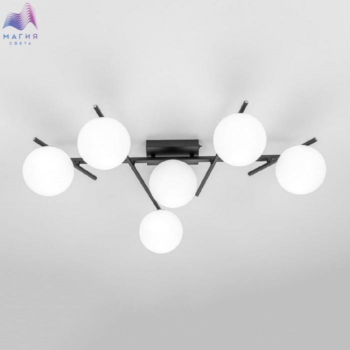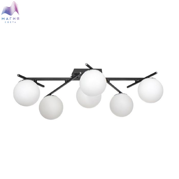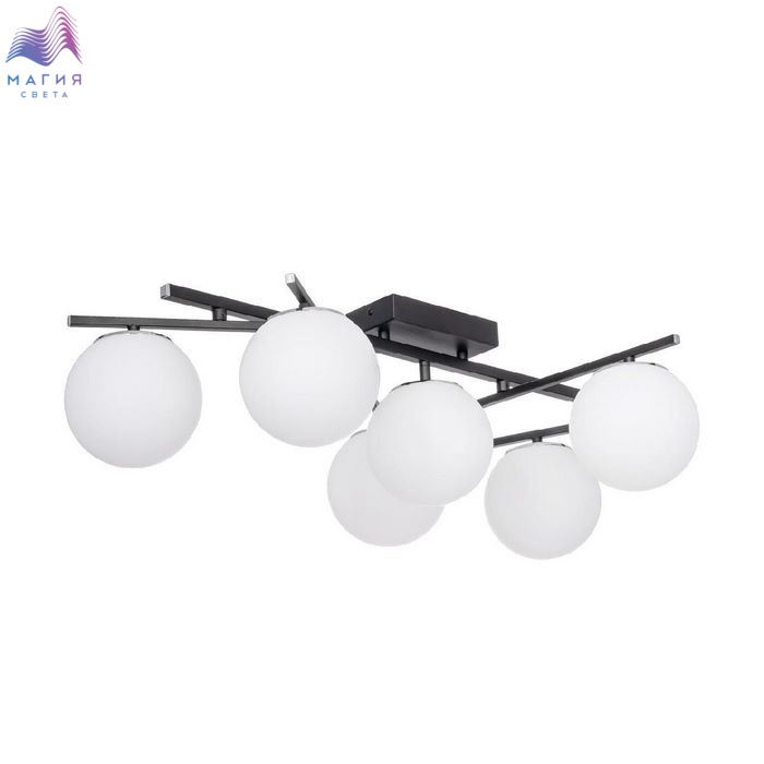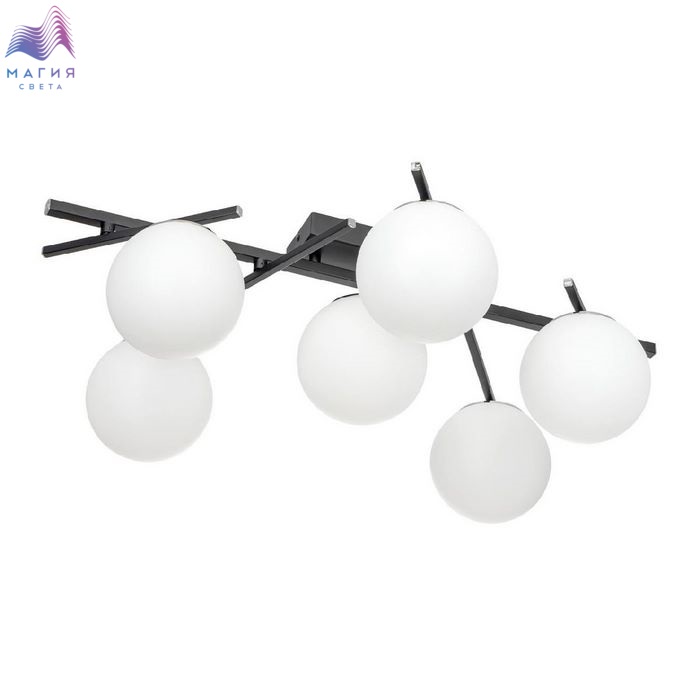 Потолочная светодиодная люстра Citilux CL223162 Dorsy. Материал: металл/полимер. Цвет: черный/белый. Шесть плафонов в форме шаров из матового оптического полимера. Поворотные рожки позволят придать модели различные формы. Пульт ДУ в комплекте (регулировка яркости от 10 до 100%, цветовая температура от 3000 до 5500К).