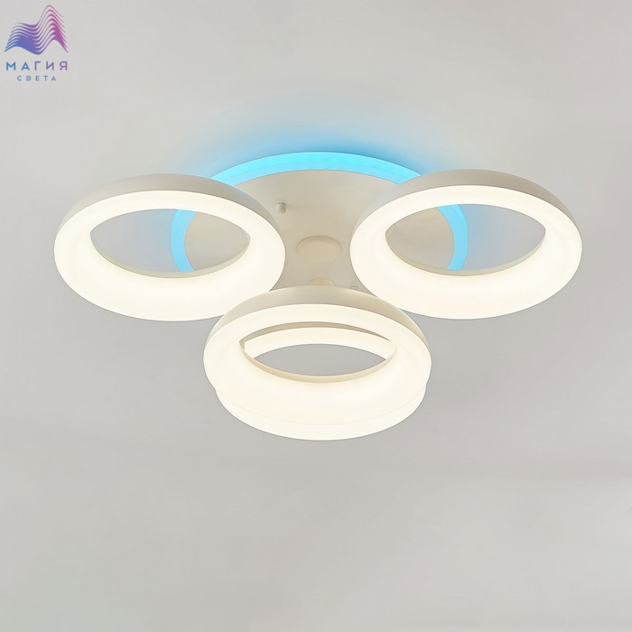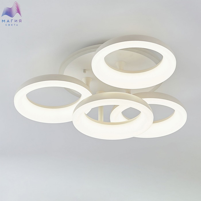 Потолочная люстра Citilux Паркер Смарт CL225A140E RGB с голосовым управлением. Цвет - матовый белый, круглое основание. 4 плафона в форме колец. Корпус и рассеиватель - полимер. Люстрой можно управлять: из приложения на смартфоне по Wi-Fi, с помощью голосовых помощников Алиса и Маруся, Сири, а также пультом ДУ и с настенного выключателя. Плавная регулировка яркости (от 10 до 100%) и цветовой температуры (от 3000К до 5500К). Независимая цветная подсветка RGB. Площадь освещения при стандартной высоте потолков до 19 м².