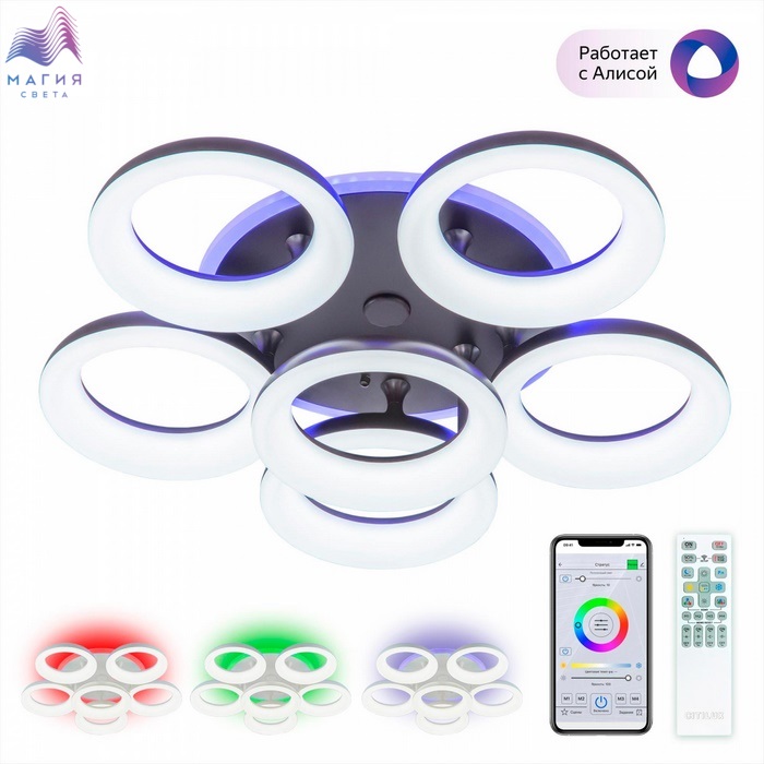 Светодиодная потолочная люстра Citilux Паркер Смарт CL225A165E RGB с голосовым управлением. Цвет - коричневый. Корпус - полимер, рассеиватель - полимер белого цвета. Люстрой можно управлять: из приложения на смартфоне по Wi-Fi, с помощью голосовых помощников Алиса и Маруся, Сири, а также пультом ДУ и с настенного выключателя. Плавная регулировка яркости (от 10 до 100%) и цвета свечения (от 3000К до 5500К). Независимая цветная подсветка RGB.