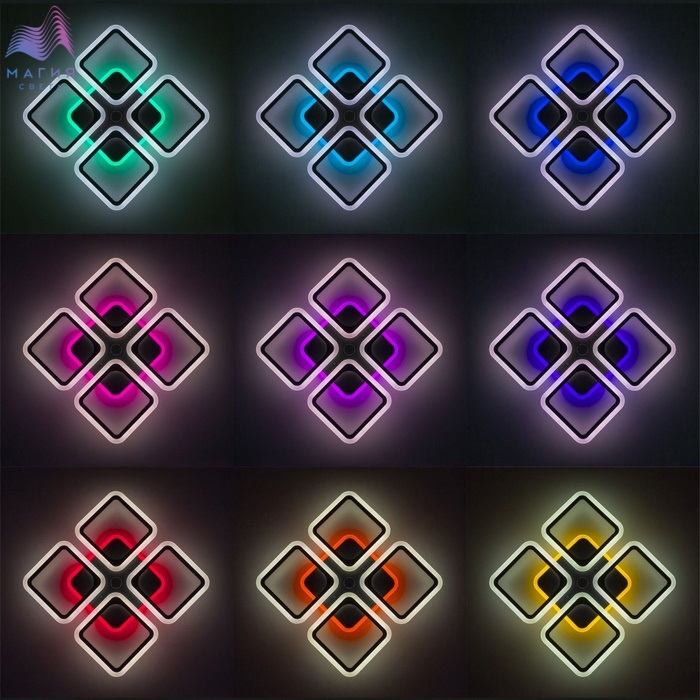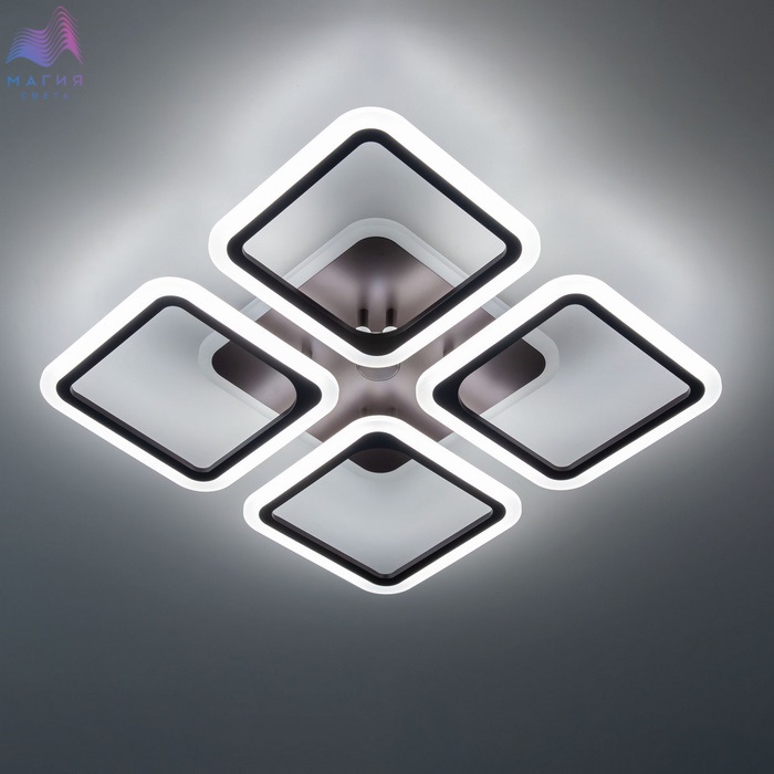 Светодиодная потолочная люстра Citilux Марсель Смарт CL232A145E RGB с голосовым управлением. Цвет - коричневый (кофейный). 4 модуля-плафона квадратной формы. Корпус - металл, рассеиватель - полимер белого цвета. Люстрой можно управлять: из приложения на смартфоне по Wi-Fi, с помощью голосовых помощников Алиса и Маруся, Сири, а также пультом ДУ и с настенного выключателя. Плавная регулировка яркости (от 100% до 10%) и цвета свечения (от 3000К до 5500К). Независимая цветная RGB подсветка.
