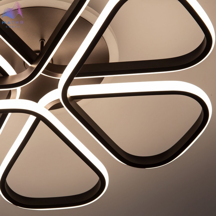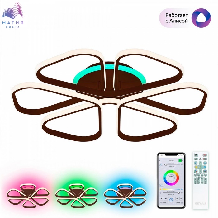 Потолочная люстра Citilux Сезар Смарт CL233A275E с голосовым управлением. Цвет - коричневый. Круглое основание. Люстрой можно управлять: из приложения на смартфоне по Wi-Fi, с помощью голосовых помощников Алиса и Маруся, Сири, а также пультом ДУ и с настенного выключателя. Плавная регулировка яркости (от 10 до 100%) и цвета свечения (от 3000К до 5500К). Независимая цветная подсветка RGB.