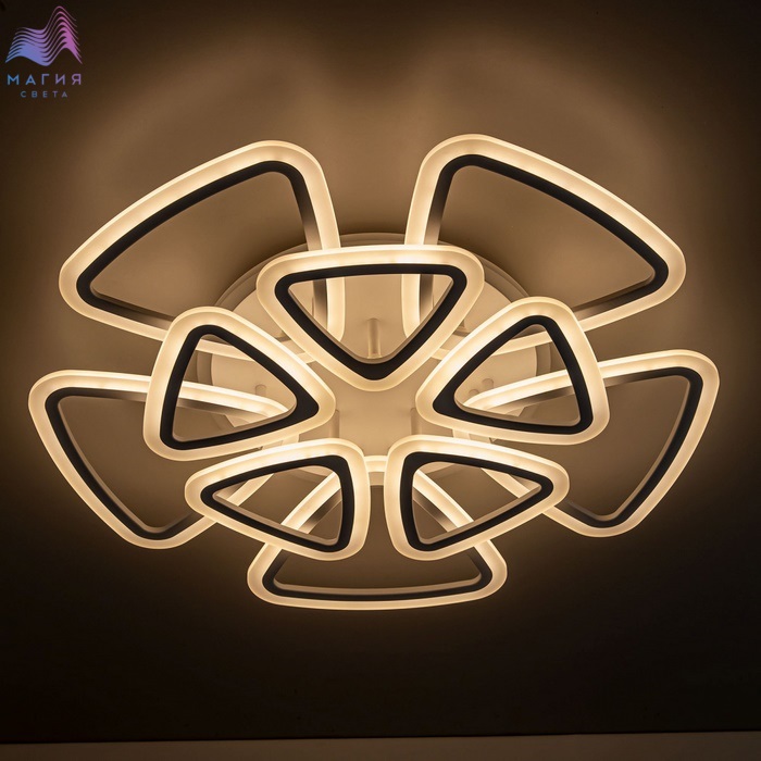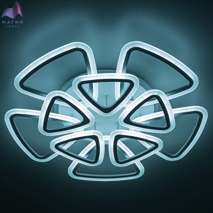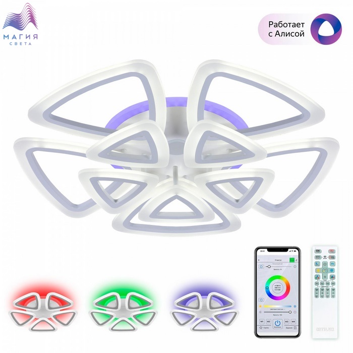 Люстра Citilux Мальта Смарт CL234A290E RGB с голосовым управлением. Цвет - белый, основание круг. 10 плафонов треугольной формы. Корпус - металл, рассеиватель - полимер. Люстрой можно управлять: из приложения на смартфоне по Wi-Fi, с помощью голосовых помощников Алиса и Маруся, Сири, а также пультом ДУ и с настенного выключателя. Плавная регулировка яркости (от 100 до 10%) и цвета свечения (от 3000К до 5500К). Независимая цветная RGB подсветка. Пульт ДУ в комплекте.