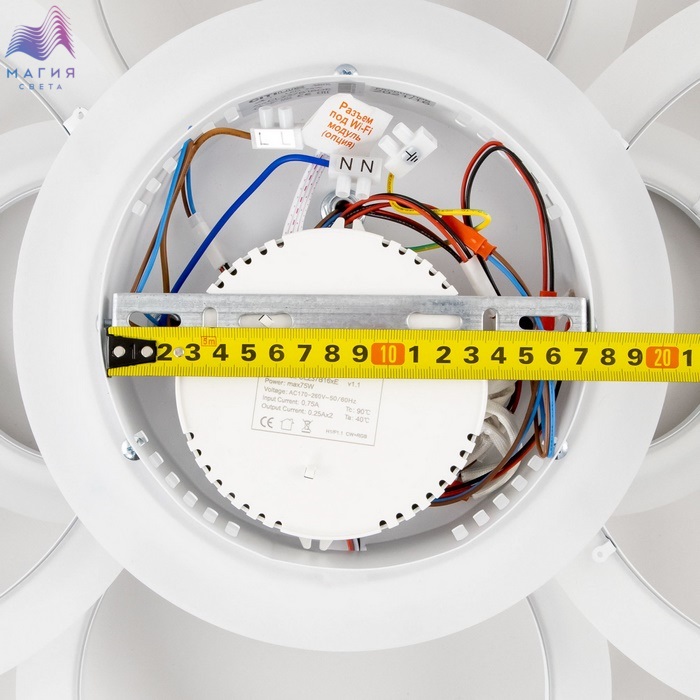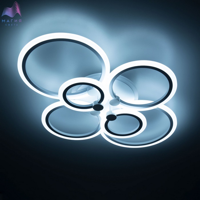 Люстра Citilux Сента CL237B160E. Корпус - металл, цвет - белый. Светильником можно управлять с помощью пульта ДУ и настенным выключателем. Регулировка яркости (от 100% до 10%) и цвета свечения (3000-5500К). 2 режима цветной RGB подсветки основания. 4 кнопки памяти. 4 выделенных канала, к которым можно привязать неограниченное количество светильников. Опционально: при установке смарт-модуля Citilux CLR1M (не входит в комплект, приобретается отдельно) светильник становится УМНЫМ (управляется из приложения Citilux Smart со смартфона или планшета, а также с помощью голосовых помощников Алиса от Яндекс и Маруся от mail.ru).