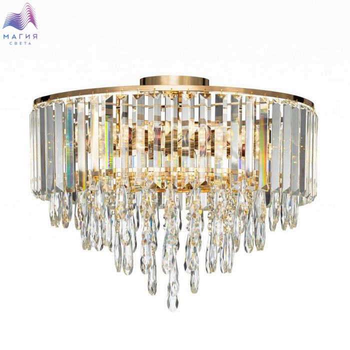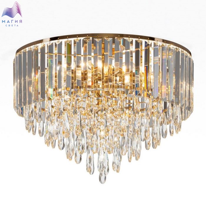 Хрустальная люстра Citilux LEONNA CL320182. Материал: металл/хрусталь. Цвет: золото/прозрачный. Площадь освещения - до 19 м².