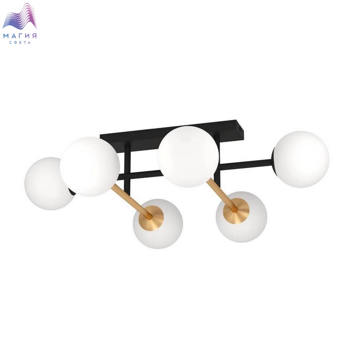 Потолочная люстра и подвесные светильники серии Eglo Paz отвечают современным трендам. Арматура окрашена в 2 цвета: латунный и черный. Плафоны изготовлены из опалового стекла и имеют форму шара.