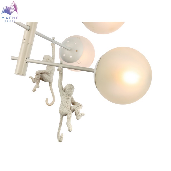 Серия Evoluce Tenato привлекает к себе внимание! В данной коллекции представлены настенный светильник и потолочная люстра. Металлический каркас белого цвета дополнен стеклянными плафонами в форме шара. Рожок декорирован фигуркой обезьяны. Данные модели можно использовать для декорирования и освещения детской комнаты или современного интерьера.