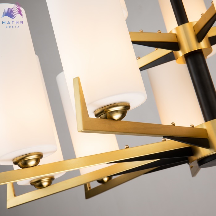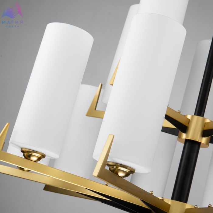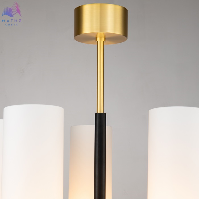 Плафоны серии Favourite Maximo изготовлены из матового стекла в виде узких вытянутых цилиндров. Цвет покрытия металла - теплая латунь с элементами черного цвета. В коллекции представлены потолочные люстры и бра, которые уместно будут смотреться как в классическом, так и современном интерьере.
