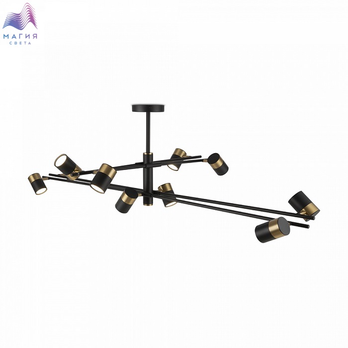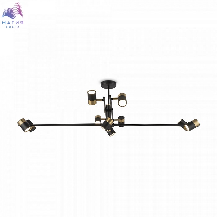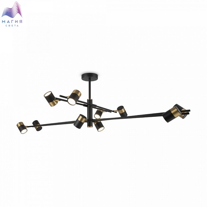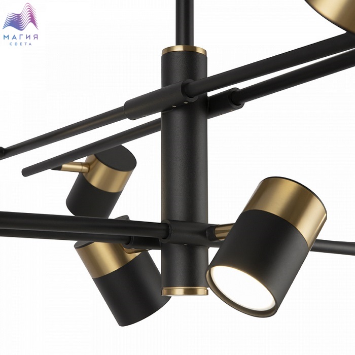 Потолочная люстра Freya Enzo исполнена в стиле минимализм. Металлическая арматура окрашена в черный оттенок в сочетании с латунной окантовкой. Модель оснащена поворотными плафонами. Регулируйте направление света, акцентируя внимание на необходимых зонах и меняя геометрию помещения. В серии Freya Enzo собран готовый световой ансамбль для формирования комплексных сценариев освещения: люстры, бра, настольная лампа и торшер.