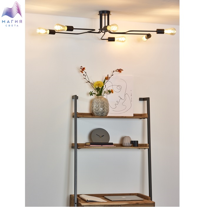 Линии на потолке - пожалуй, так можно описать потолочную люстру Lucide Lester. Металлический каркас окрашен в черный цвет. Модель исполнена в стиле "лофт" и подходит для освещения спальни, гостиной, кухни с невысокими потолками.