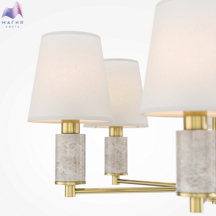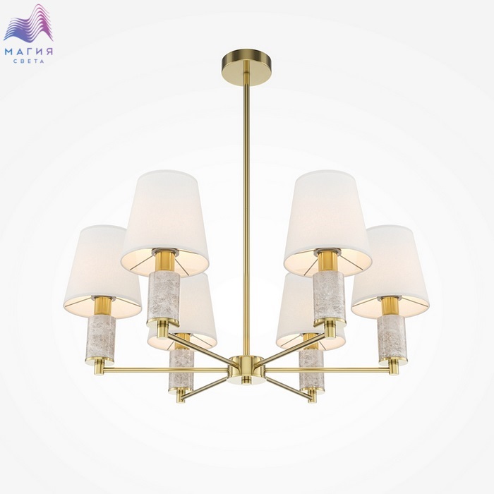 Серия Maytoni Lira сочетает в себе элементы классики и современности. В коллекцию входят подвесные светильники на 6 и 8 рожков, бра, настольная лампа и торшер. Акцентное сочетание теплой сатинированной латуни металлической арматуры и благородного серого мрамора создает контраст, а текстильные абажуры добавляют мягкости и уюта.