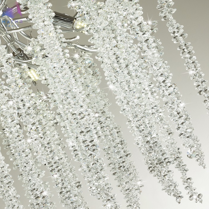Серия Odeon light Banche — это природные мотивы, изящество линий и многообразие форм, выраженных в моделях люстр и настенных светильников. Множество свисающих подвесок из плотно нанизанных переливающихся хрустальных бусин, словно «сережки» на изогнутых ветвях плакучей ивы. Арматура в серебристом цвете выполнена из алюминия. Аккуратная точечная сварка фиксирует соединения. Ручным способом можно формировать «крону» люстр и бра, подгибая и выпрямляя ветви. В линии есть потолочная и подвесная круглые люстры, овальная люстра и бра. Популярная сейчас овальной формы модель предназначена для размещения над обеденной зоной.