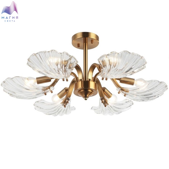 Люстра потолочная 2153/05/06P Stilfort серии Muschel это воплащение стиля модерн. Арматура изготовлена из металла в цветовом исполнении "Бронза". Плафоны люстры выполнены в виде ракушки из текстурированного прозрачного стекла.