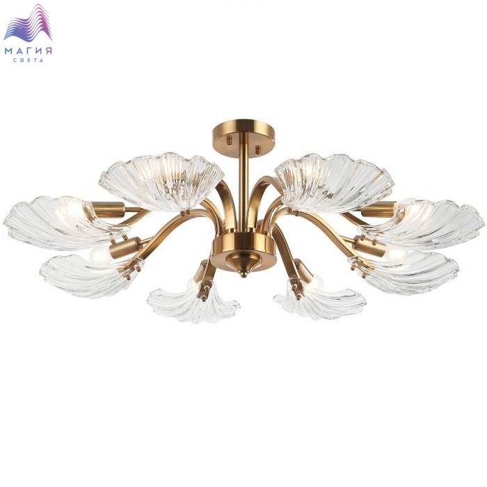 Люстра потолочная 2153/05/08P Stilfort серии Muschel это воплащение стиля модерн. Арматура изготовлена из металла в цветовом исполнении "Бронза". Плафоны люстры выполнены в виде ракушки из текстурированного прозрачного стекла.