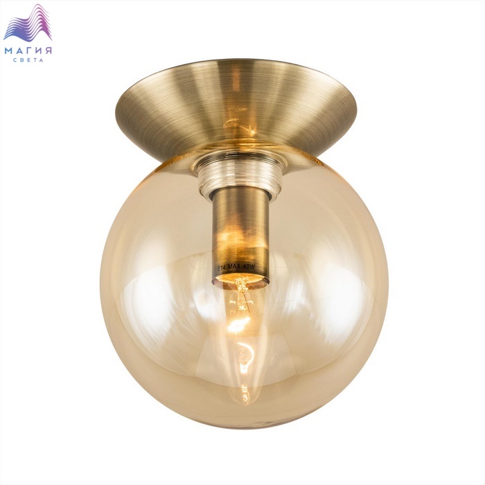 Потолочный светильник Citilux Томми CL102513 в современном стиле. Основание металлическое, круглой формы, цвет бронза. Плафон стеклянный в форме шара, прозрачный с тонировкой оттенка шампань (золотистый).