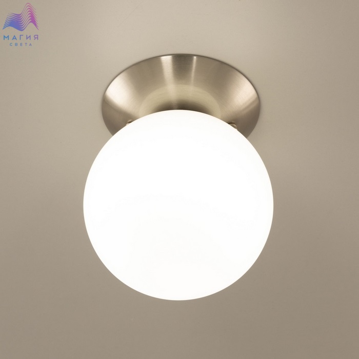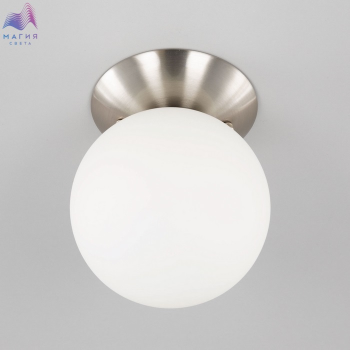 Потолочный светильник Citilux Томми CL102514. Материал: металл/стекло. Цвет: матовый хром/белый. Плафон в форме шара, изготовлен из матового стекла. Площадь освещения около 2,5м².