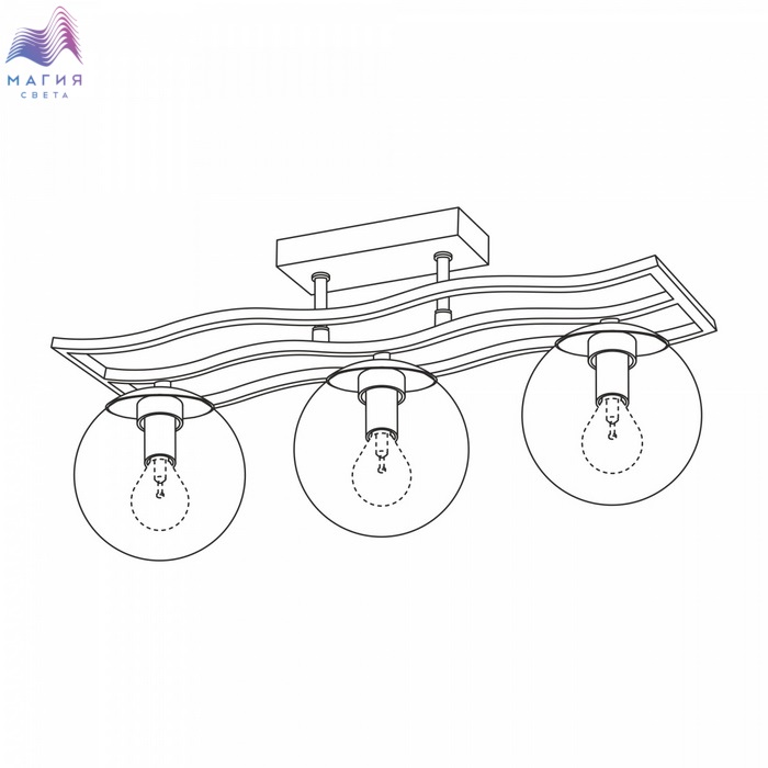 Потолочный светильник Citilux Бриз CL106235 с тремя плафонами. Корпус светильника металлический, каркас изогнутый вытянутый, основание прямоугольной формы. Цвет модели коричневый матовый. Плафоны стеклянные прозрачные, модного оттенка шампань. Форма плафонов – шар.