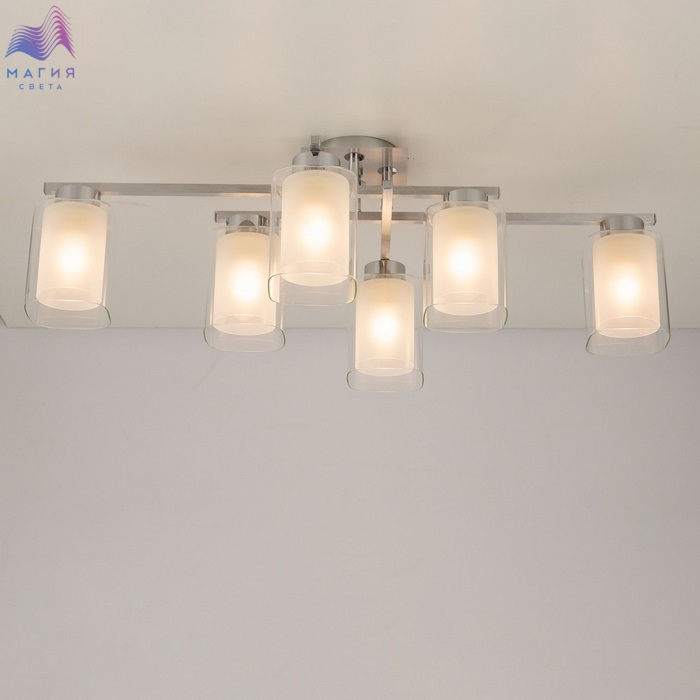 Потолочная люстра Citilux Диез CL111160 исполнена в современном стиле. Корпус изготовлен из металла, цвет - алюминий/хром. Плафоны стеклянные, двойные: внешний - прозрачный, внутренний - белый. Площадь освещения до 19 кв. метров.