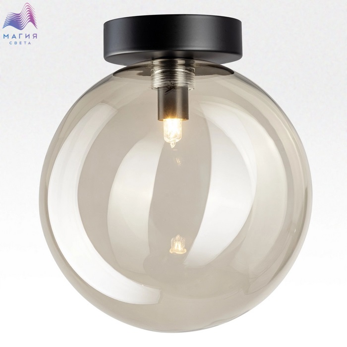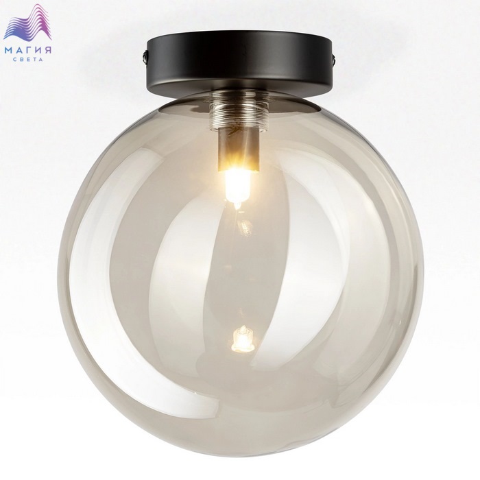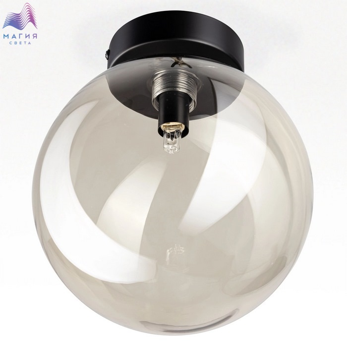 Потолочный светильник Citilux ORTON CL202511. Материал: металл/стекло. Цвет: черный/дымчатый. Плафон в форме шара. Прозрачный стеклянный шар с лёгким дымчатым оттенком, закреплённый на чёрном матовом металлическом основании, выглядит эффектно при любом освещении.