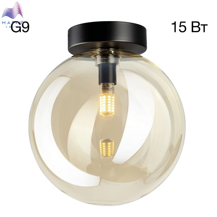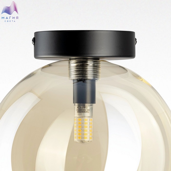 Потолочный светильник Citilux ORTON CL202512. Материал: металл/стекло. Цвет: черный/шампань. Плафон в форме шара. Прозрачный шар с золотистым оттенком шампань, закреплённый на чёрном матовом металлическом основании, становится стильным арт-объектом, который выглядит эффектно при любом освещении.