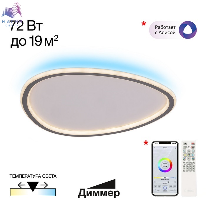 Модели оснащены пульто ДУ, с помощью которого доступно: плавная регулировка яркости 10 - 100%; управление цветовой температурой 3000К - 5500К.