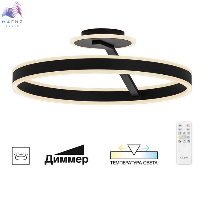 Светодиодный потолочный светильник Citilux Дуэт CL719751. Материал: металл/полимер. Цвет: черный/белый. Плафон в форме кольца. Пульт ДУ в комплекте (плавная регулировка яркости от 10 до 100%; управление цветовой температурой от 3000К до 5500К). Освещаемая площадь - от 10 до 21м².