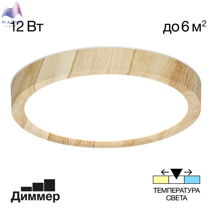 Потолочный светодиодный светильник Citilux Бейсик CL738122N выполнен в современном скандинавском стиле. Материал: полимер. Цвет: под дерево/белый. Встроенный 3-х ступенчатый диммер 100-50-10% яркости управляется настенным выключателем.