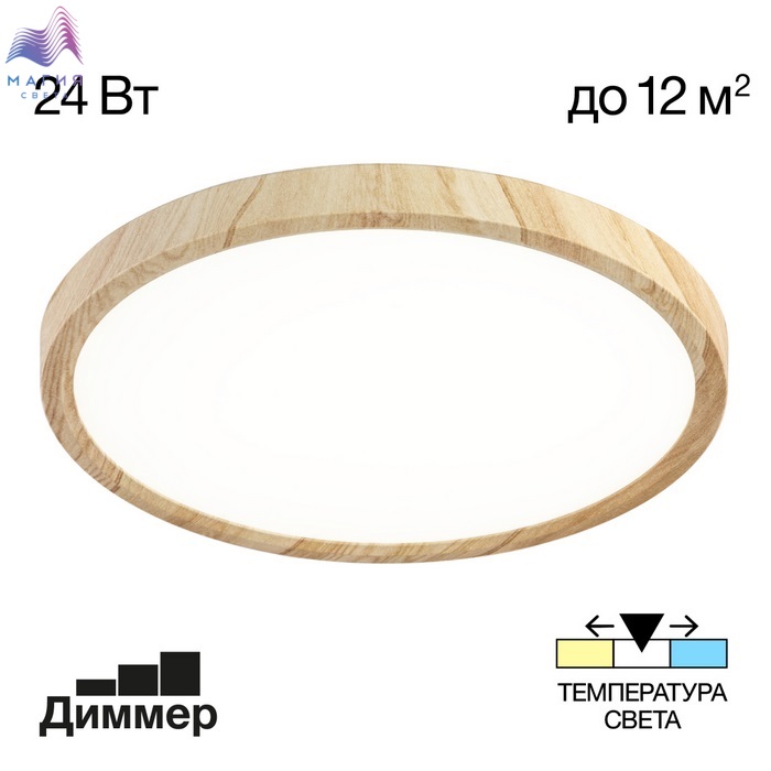 Потолочный светодиодный светильник Citilux Бейсик CL738824V выполнен в современном скандинавском стиле. Материал: полимер. Цвет: под дерево/белый. Встроенный 3-х ступенчатый диммер 100-50-10% яркости управляется настенным выключателем. Цветовая температура 3000К-4000К-5000К. Перед монтажом на тыльной стороне светильника переключателем устанавливается выбранный вариант свечения.