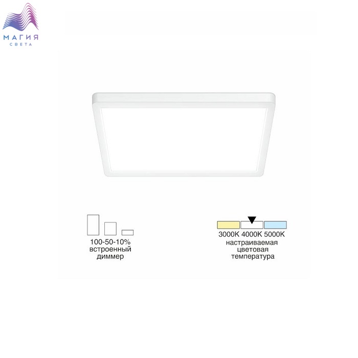 Светодиодный светильник Citilux Бейсик CL738K240V. Материал - металл, полимер. Цвет - белый. Мощность - 24 Вт. Встроенный 3-х ступенчатый диммер (100-50-10% яркости, управляется настенным выключателем). Модель имеет ступенчатую регулировку цветовой температуры 3000К, 4000К, 5000К. Для этого перед монтажом, на тыльной стороне светильника, переключателем устанавливается выбранный вариант свечения.