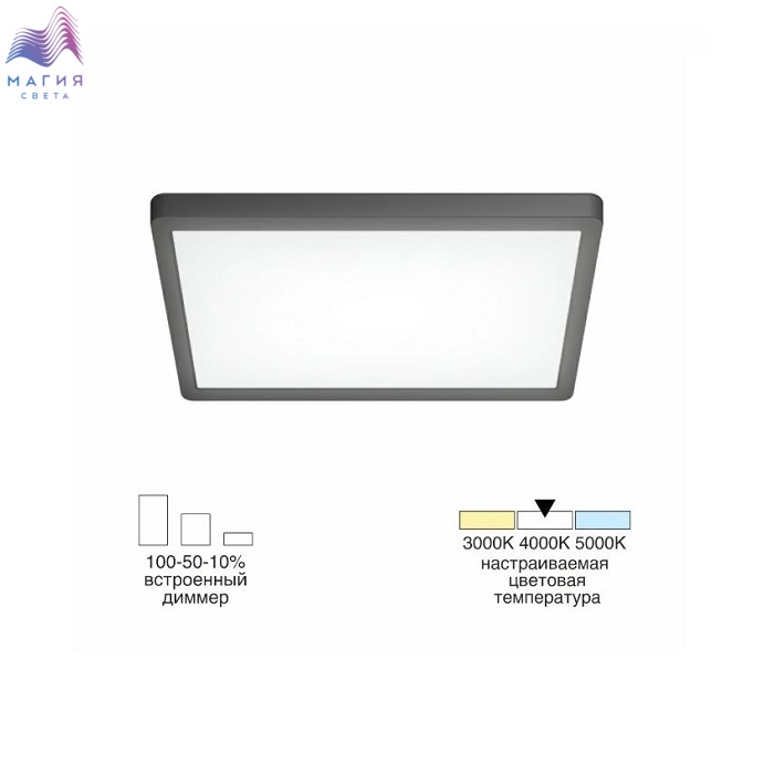 Светодиодный светильник Citilux Бейсик CL738K241V. Материал - металл, полимер. Цвет - черный. Мощность - 24 Вт. Встроенный 3-х ступенчатый диммер (100-50-10% яркости, управляется настенным выключателем). Модель имеет ступенчатую регулировку цветовой температуры 3000К, 4000К, 5000К. Для этого перед монтажом, на тыльной стороне светильника, переключателем устанавливается выбранный вариант свечения.
