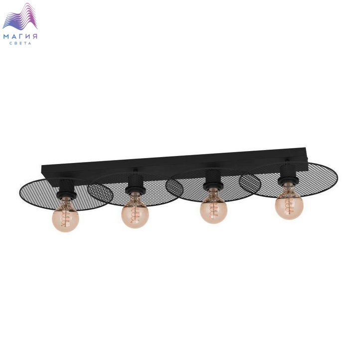 Потолочные и подвесные светильники Eglo Ikeston исполнены в стиле "лофт". Вместо стандартного плафона дизайнеры разработали металлические ажурные тарелки, что делает источник света - лампочку - открытым.