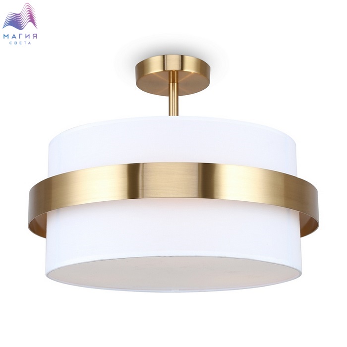 Серия Freya Bride. Металлическая арматура, цвет - латунь или никель. Круглый широкий праздничный абажур из ткани белого цвета. Декоративная парящая окантовка из металла в цвет арматуры. Регулируется по длине. Компактные размеры подходят для низких потолков и небольших интерьеров. Источник света — лампа с цоколем Е14.