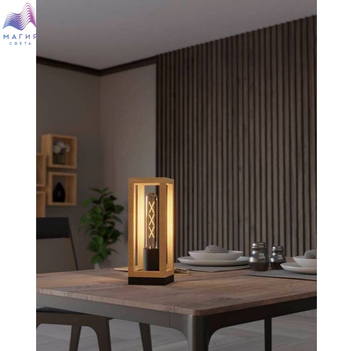 Eglo Nafferton - серия, исполненная в стиле "лофт". Металлическое основание черного цвета дополнено деревянным каркасом, выступающим в качестве плафона.