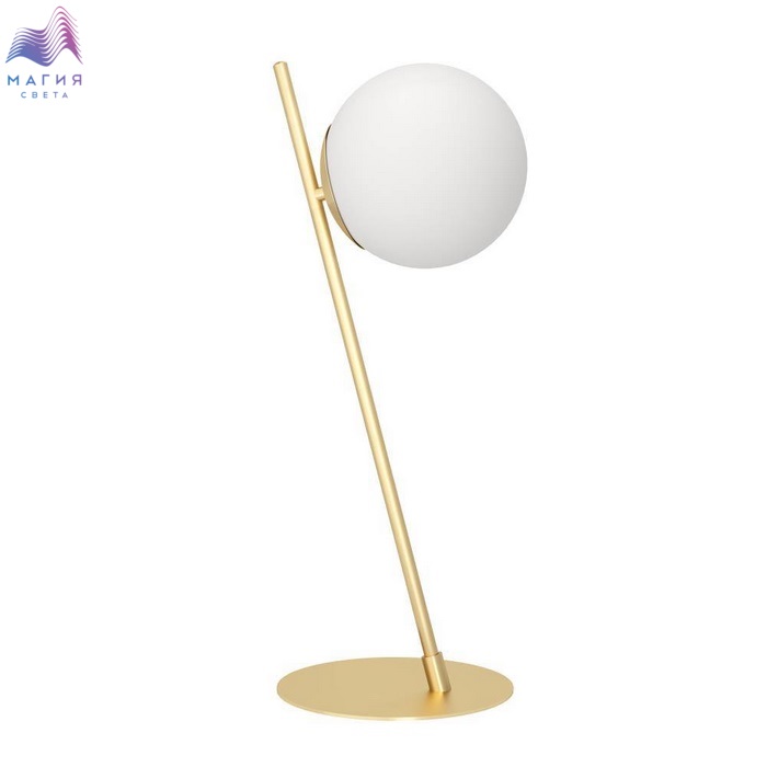 Торшер и настольная лампа из коллекции Eglo Rondo 4 исполнена в матовом латунном цвете. Плафон в форме шара изготовлен из белого стекла.