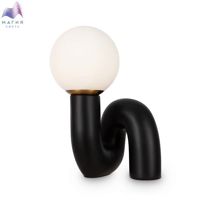 Настольная лампа Freya Slide отличается оригинальной формой основания. Изогнутая нога светильника выполнена из полирезина, цвет покрытия — черный. Плафон-сфера из белого матового стекла создает мягкий заливающий свет. Дизайн светильника воплощает в себе предмет искусства.