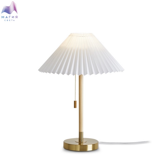 Freya Kinsley - лаконичная серия, прекрасно вписывающая в стили вабисаби, эко-стиль и сканди. Плафон изготовлен из белой ткани. Металлическое латунное основание дополнено элементами, выкрашенными под дерево.