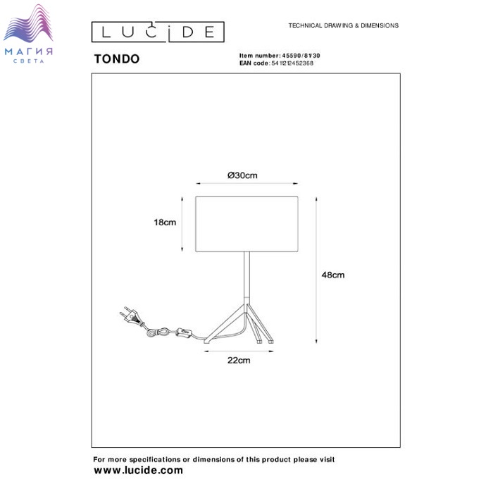 Настольные лампы и торшеры Lucide Tondo можно использовать для декорирования и освещения спальни или гостиной. Металлическое основание дополнено объемным плафоном, выполненным из плотной, черной ткани. Выключатель расположен на проводе.