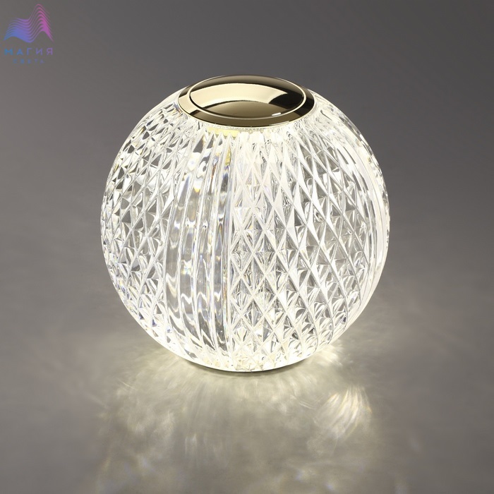 Великолепная светодиодная серия Odeon light Crystal поражает изяществом, лаконичностью и многообразием модельного ряда. Особенно великолепна портативная настольная лампа, которая станет украшением любого интерьера и великолепным подарком. Акриловый шар, имитирующих хрустальную резную фактуру, создаст непередаваемую игру света и переливов. Лампа работает от аккумуляторной батареи и требует подзарядки через провод с USB. Включение/выключение/диммирование производится прикосновением. Мощность изменяется на 20%-60%-100 %.