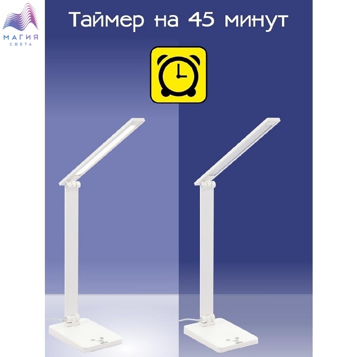 Настольная лампа Citilux Ньютон CL803080. Материал: металл/полимер. Цвет: матовый белый. Модель оснащена с регулировкой яркости, USB зарядкой и встроенным таймером выполнена в современном стиле. Основание прямоугольной формы.