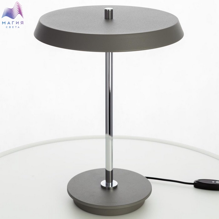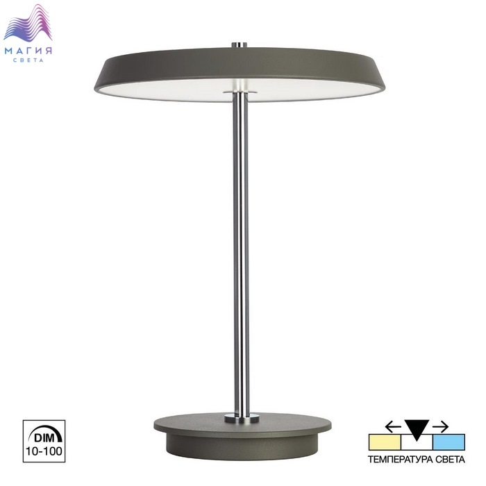 Светодиодная настольная лампа Citilux LINA CL812012. Материал: металл/полимер. Цвет: матовый серый/хром. Плафон - плоский светодиодный модуль, круглой формы с оригинальным усечённым торцом. Диммер с плавной регулировкой яркости от 10 до 100% позволяет выбрать оптимальный уровень освещения. Цветовая температура регулируется, доступны три варианта - 3000-4000-6000К.